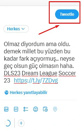 5- Tweeter butonuna tıklarak sadece tweet tusuna basıyoruz.