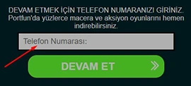 8- Oyunun yüklü olduğu telefon numaramızı giriyoruz ve "DEVAM ET" butonuna tıklıyoruz.